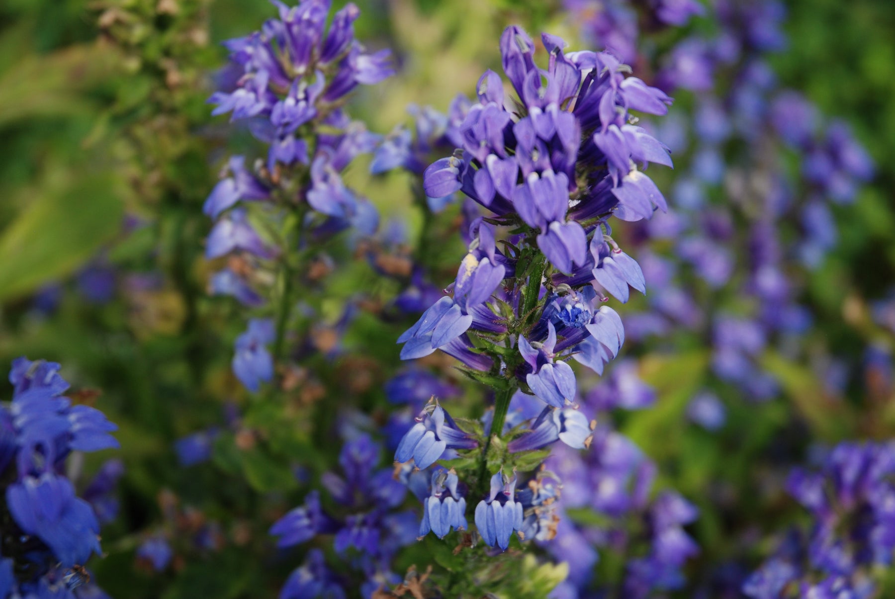 Similar to Lobelia cardinalis, except produces long-lasting bright blue flowers in late summer. The spikes of bright blue flowers atop serrated lance shaped foliage. Full sun to Part shade, up to 3" tall, Zone 5