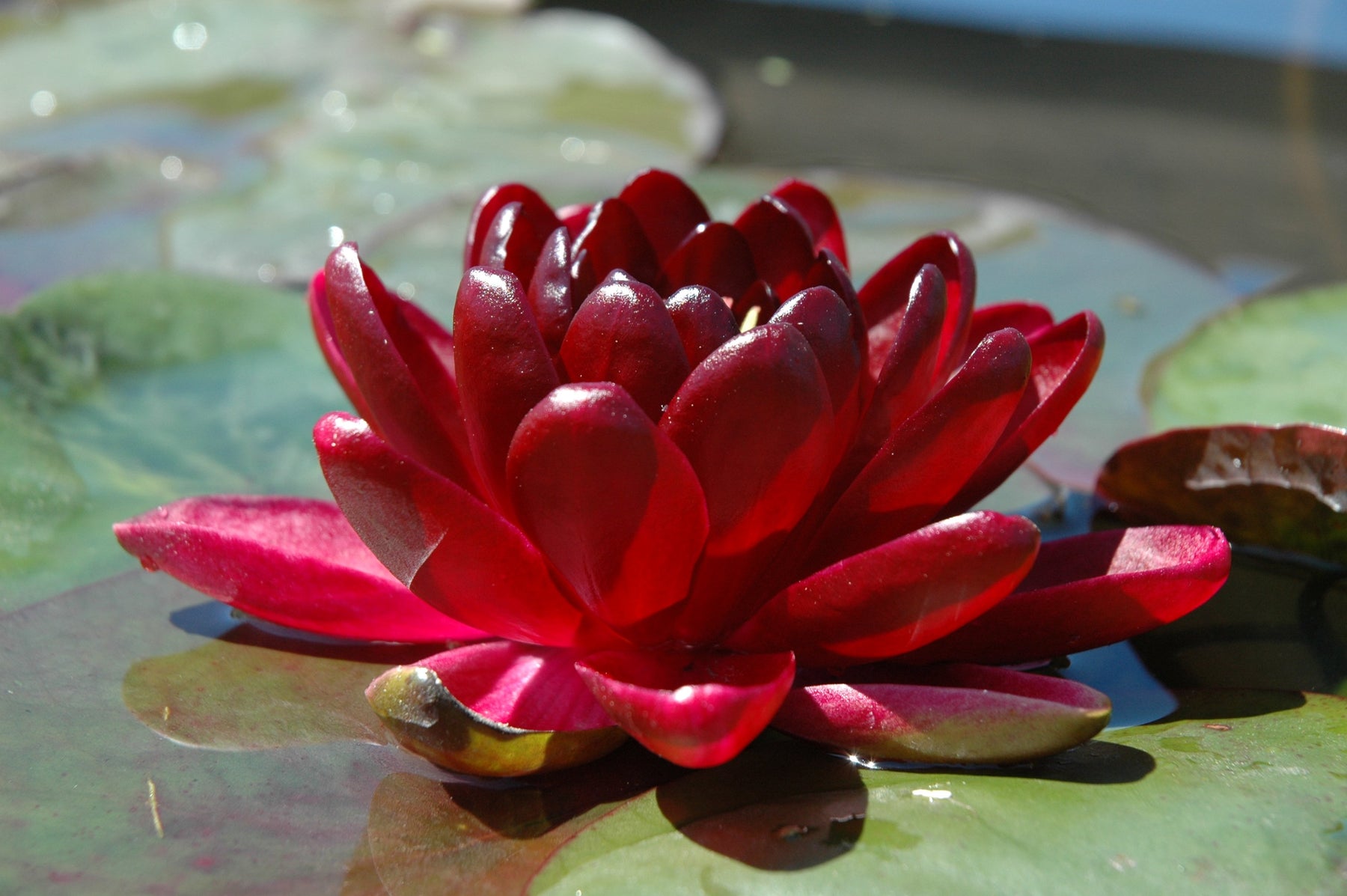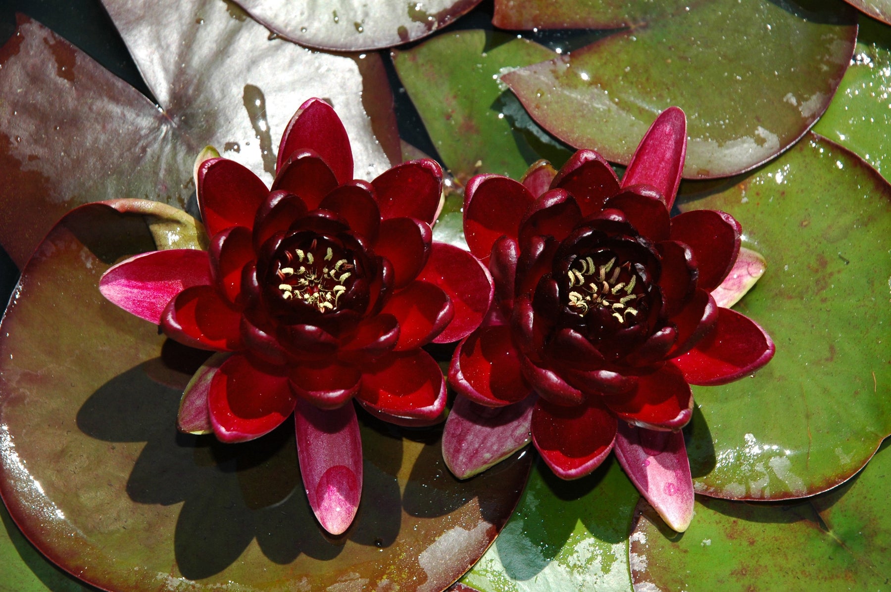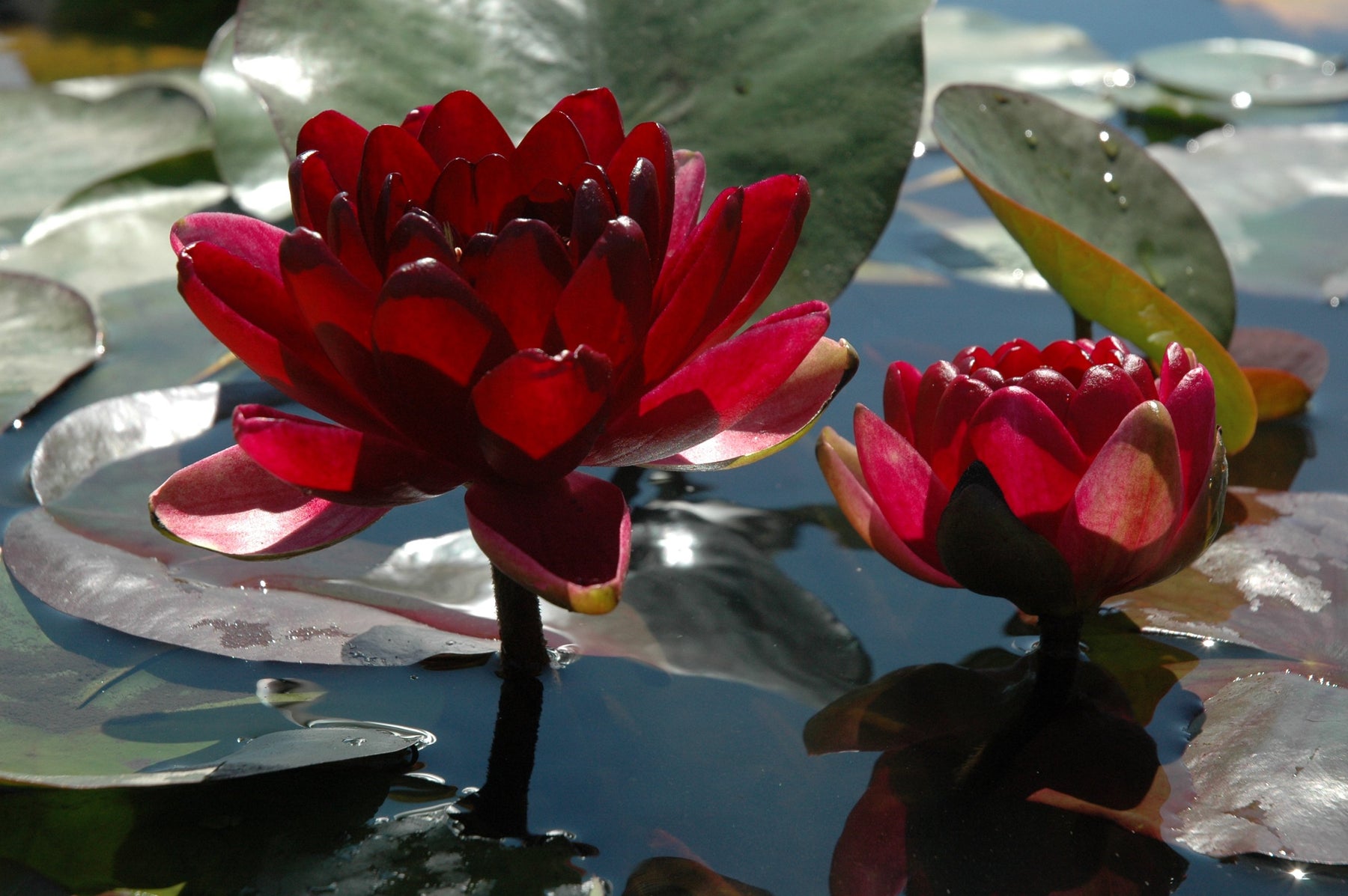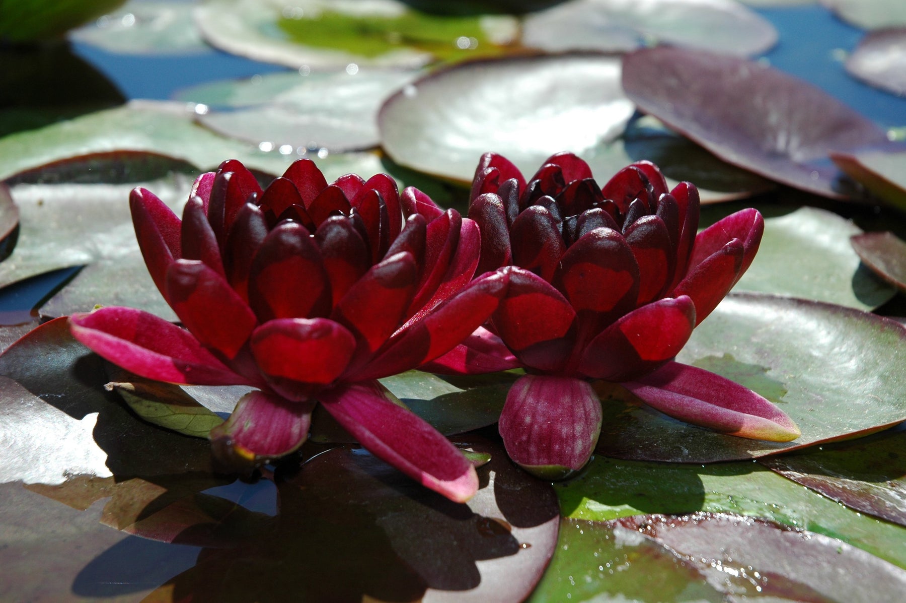 This water lily has magnificent, deep red-black, spectacular goblet shaped blossoms 4-6 inches that gives this lily its name. Green leaves but new growth is flushed with red, which fades as the leaf matures. Very prolific bloomer. Large 6+ feet spread. Full sun