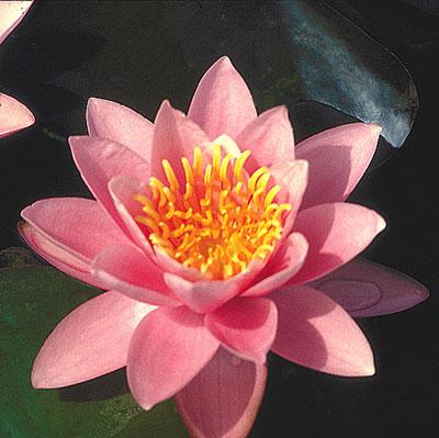 Rich pink flower grows lighter at the petal tips, these cactus or cup shaped blooms of 4-6 inches is very Fragrant, A vigorous, prolific bloomer, with blooms that stay open late in the day. Blooms late in the season. Green leaves. Growth 3-5 feet wide, Full sun, 8-24 inches of water. Good for medium ponds or large ponds.