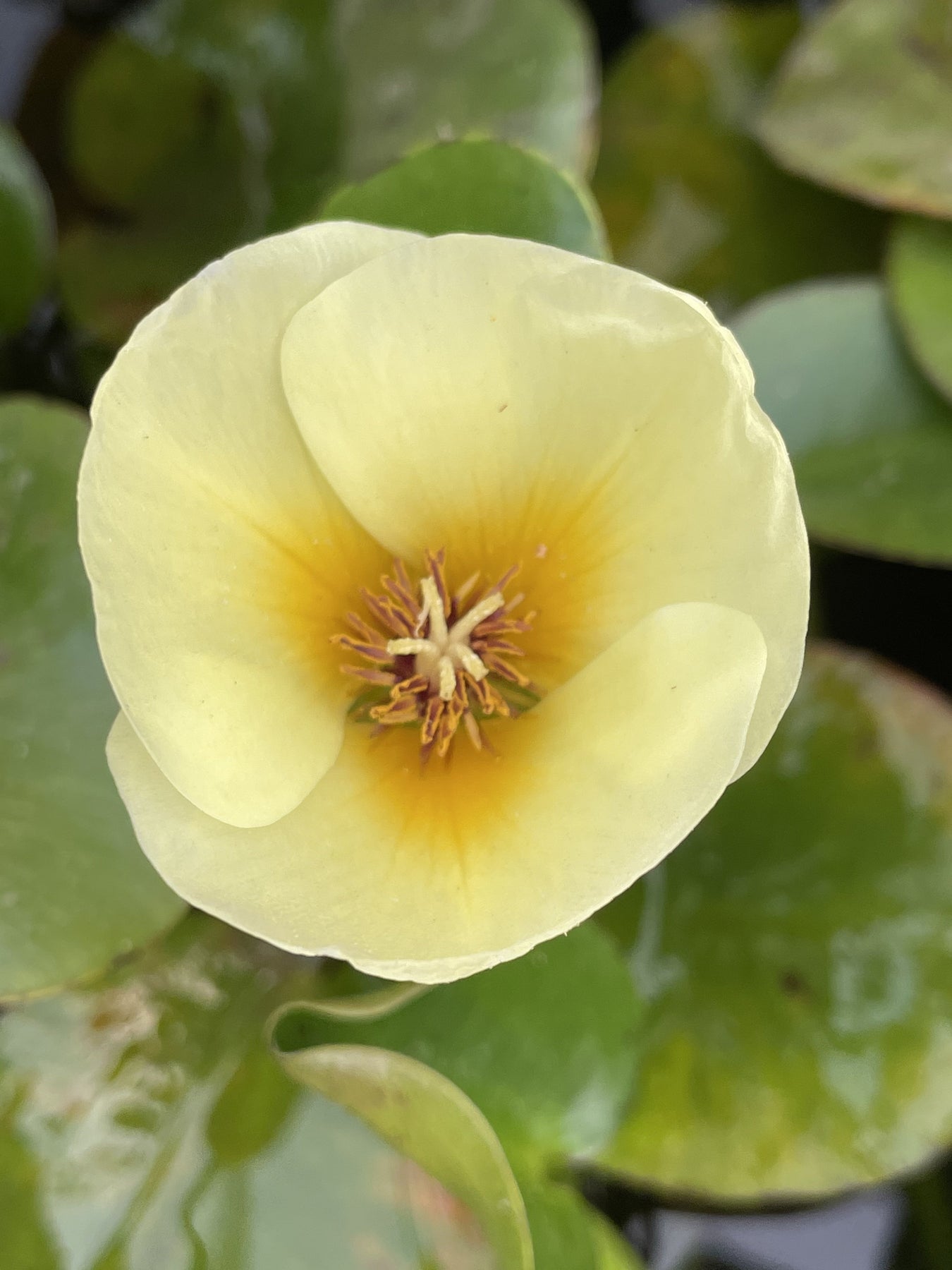 Flower is similar to standard water poppy, but leaves are much larger and heavily marked with reddish purple spots. An exceptional floating, perennial aquatic plant. This Cheerful, yellow plant with flowers spring forth from the mass of foliage when water temperatures reach at least 70 F. (21 C.). Water Poppy plants can be grown in any pond with a shallow bottom because they grow best when submerged about 6 inches. Even though the yellow flower blooms only last one day, rest assured that it will produce flowers throughout the summer growing season.